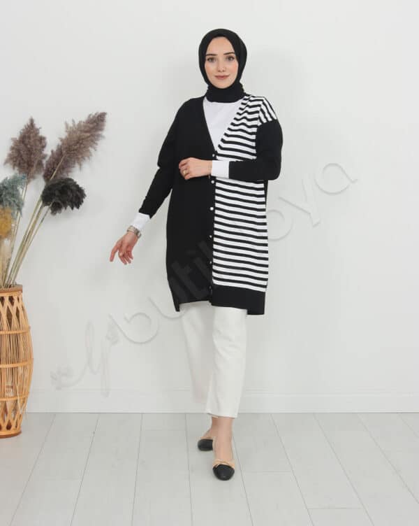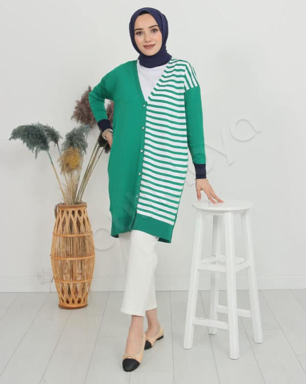Ürün Özelliği: V yakalı, kendinden kuşaklı, yanları yırtmaçlı, yarasa kollu, kollardan çizgi detaylı çok kullanışlı bir üründür.