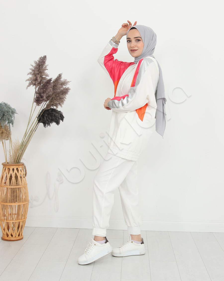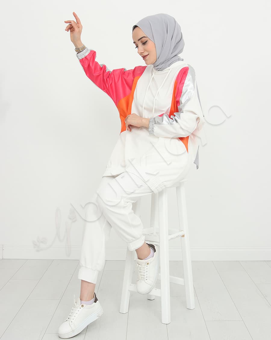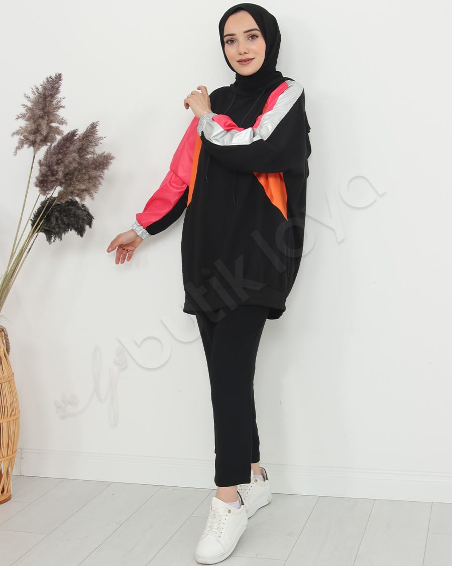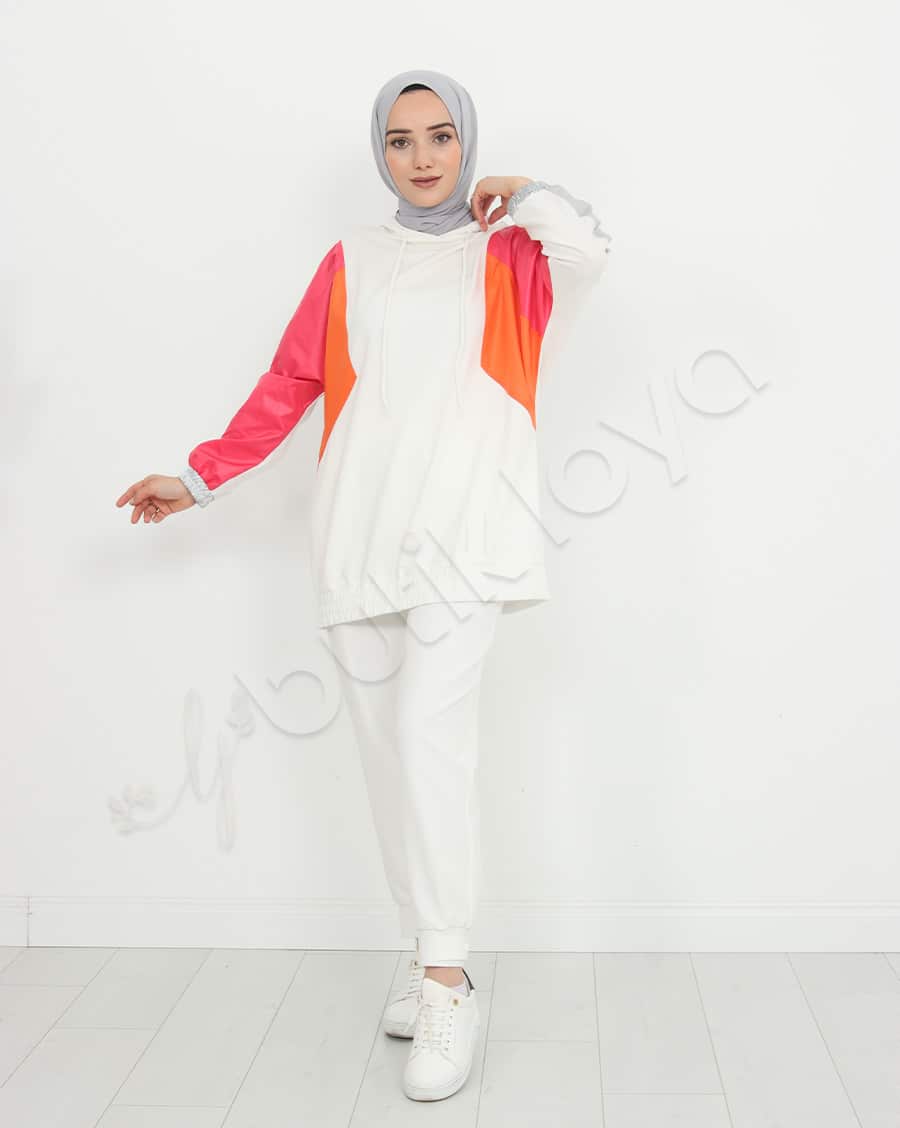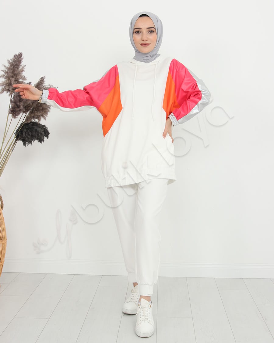 Ürün Özelliği: Kol bilekleri ve bitiş ucu lastiklidir. Omuzdan kola doğru parlak deseni mevcuttur. Üzerindeki desenler naylondandır. Ürün kapşonludur ve cepsizdir.