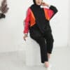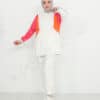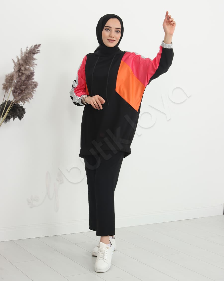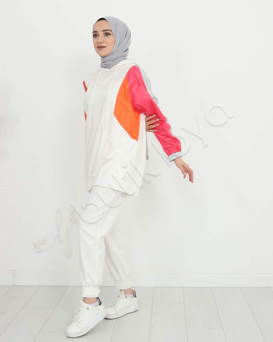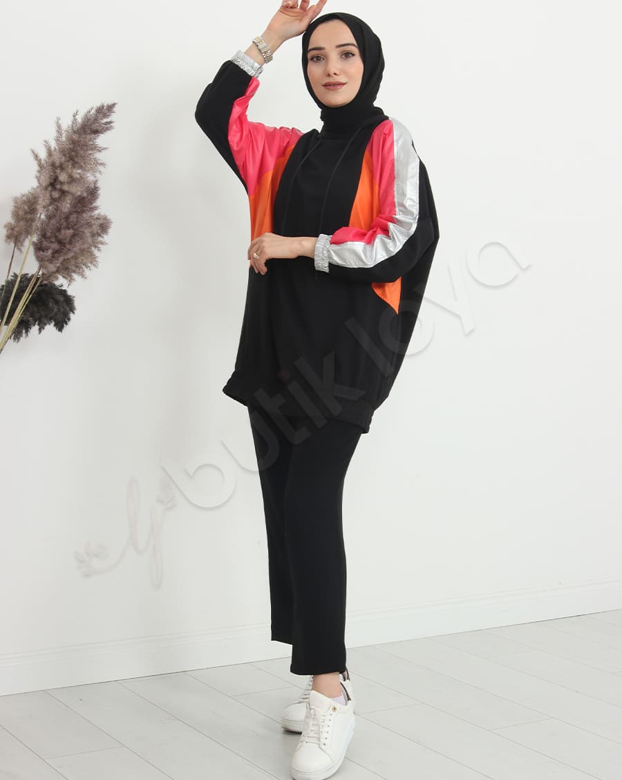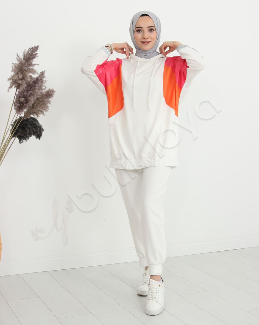Ürün Özelliği: Kol bilekleri ve bitiş ucu lastiklidir. Omuzdan kola doğru parlak deseni mevcuttur. Üzerindeki desenler naylondandır. Ürün kapşonludur ve cepsizdir.